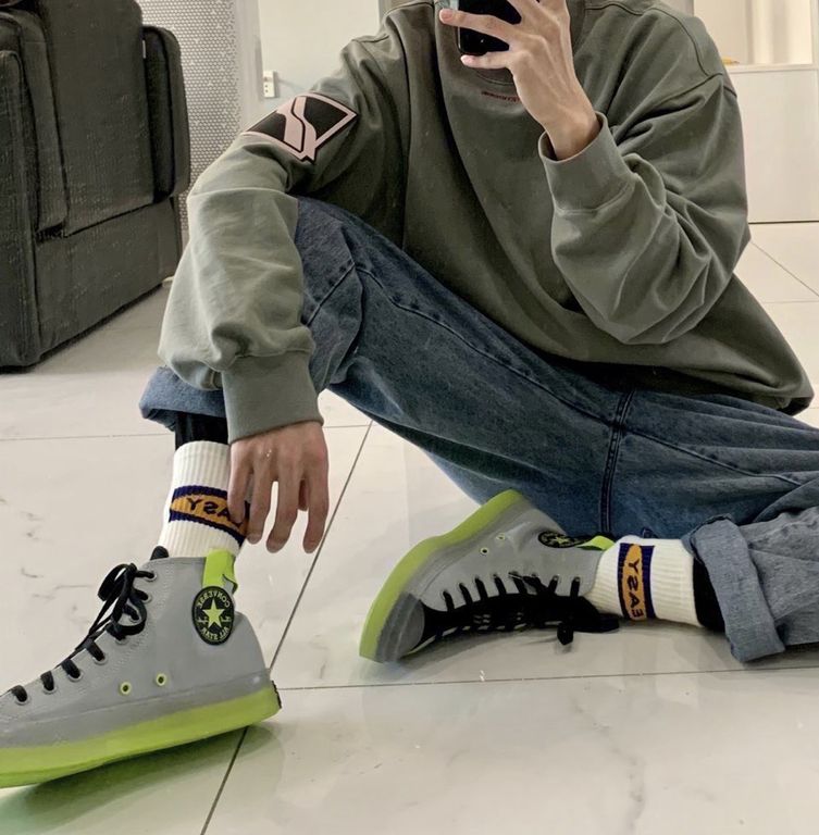 Кеды Converse All Star Cx Stretch Canvas серые высокие с салатовыми вставками